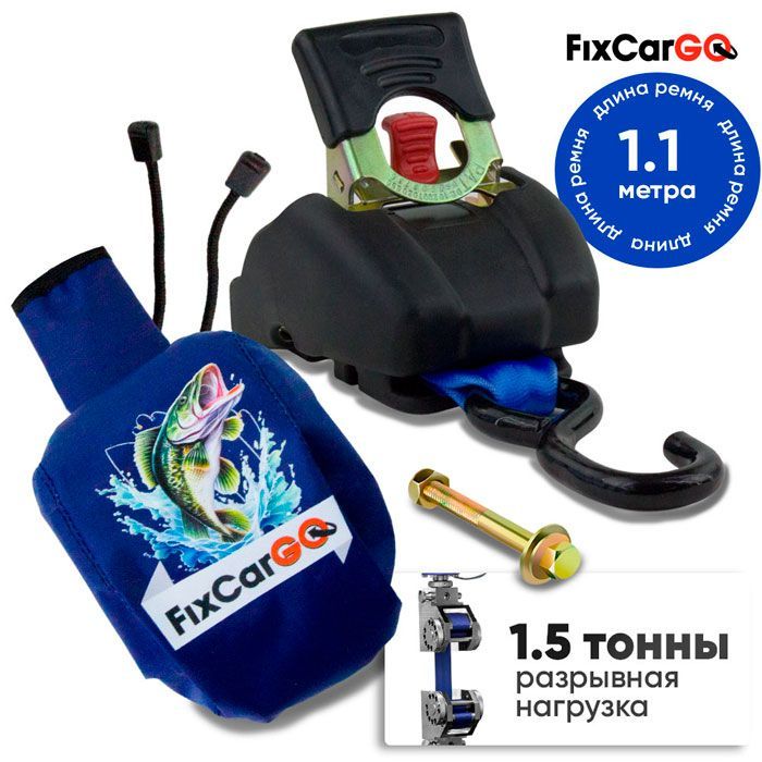 Самозатягивающийся ремень 50 мм, 1,1 м, крюк-болт в комплекте с чехлом