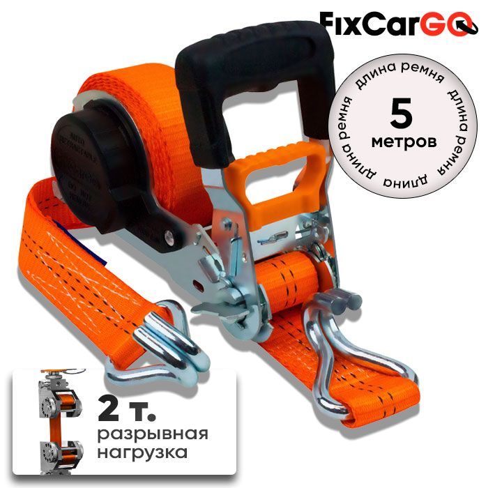 -Самозатягивающийся ремень крепления груза 35 мм, 5 м, с двойными крюками